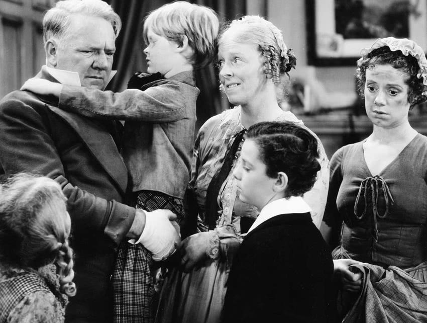 David Copperfield (1935) La storia travagliata di un bambino che, da una vita agiata, si ritrova povero e diseredato. Il più autobiografico dei romanzi di Dickens, costretto a lavorare in fabbrica dopo che il padre fu arrestato a causa dei debiti. Il romanzo fu pubblicato per la prima volta mensilmente su rivista tra il 1849 e il 1850. Si dice che l’antagonista Uriah Heep fosse basato sullo scrittore di favole danese Hans Christian Andersen, ospite indesiderato della famiglia Dickens: «Era un noioso ossuto». Il celebre adattamento di George Cukor è stato selezionato dal New York Times come uno dei migliori 1000 film mai girati. La Londra vittoriana è stata ricostruita negli studi della MGM.