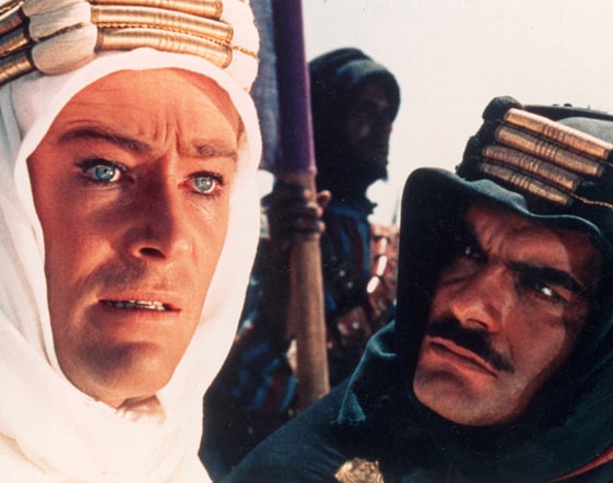 Peter O’Toole col turbante, gli intensi occhi azzurri e il volto seminascosto secondo l’usanza araba è un altro dei “segni” precisi e indiscutibili del cinema.