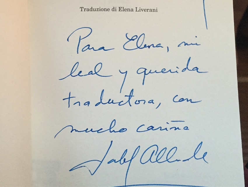 Una dedica di Isabel Allende alla sua traduttrice Elena Liverani