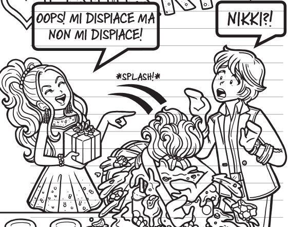 Illustrazione tratta dal libro "Buon compleanno! I diari di Nikki", di Rachel Renée Russell, Il Castoro 2022