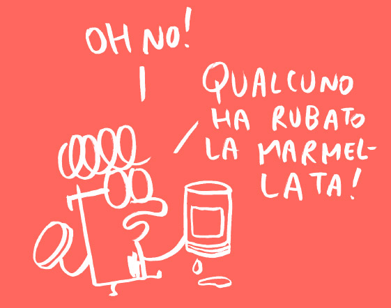 Illustrazione tratta dal libro "Chi ha rubato la marmellata", di Andrea Coccia, Corraini Edizioni, 2022