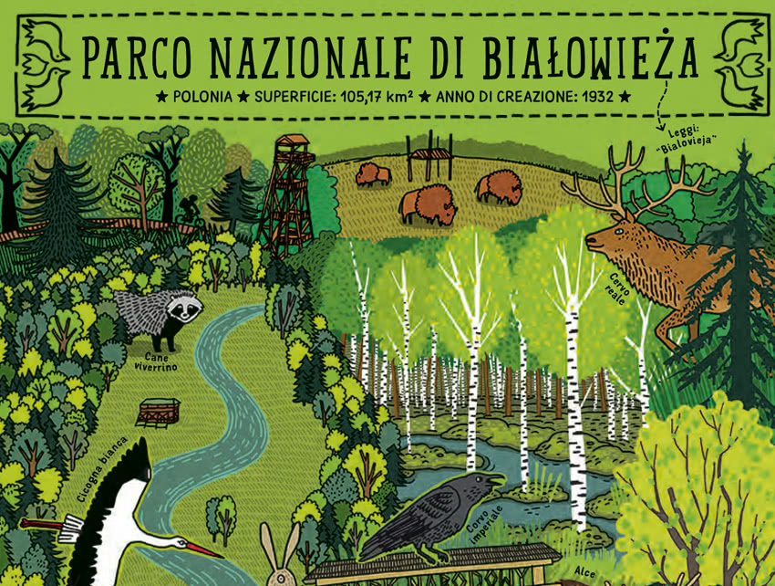 Vi metterete in cammino con due simpatici personaggi: il bisonte Kuba e lo scoiattolo Ula, che sono grandi amici e vivono in un'immensa foresta che si chiama Białowieża, in Polonia. Un giorno decidono di partire e attraversano i continenti del mondo, facendo tanti incontri molto interessanti e spassosi. Lasciatevi condurre alla scoperta dei grandi parchi, come Yellowstone, Manu, Namib-Naukluft, Jiuzhaigou.