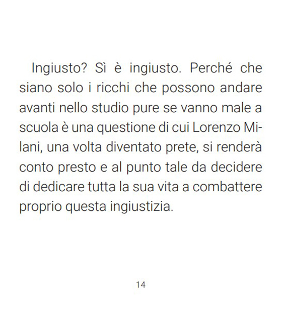 Ecco, anche io di Don Milani sapevo poco prima di leggere questo libro, breve e intenso, quindi un grazie va a chi ha raccontato la sua storia per noi e per voi ragazzi.