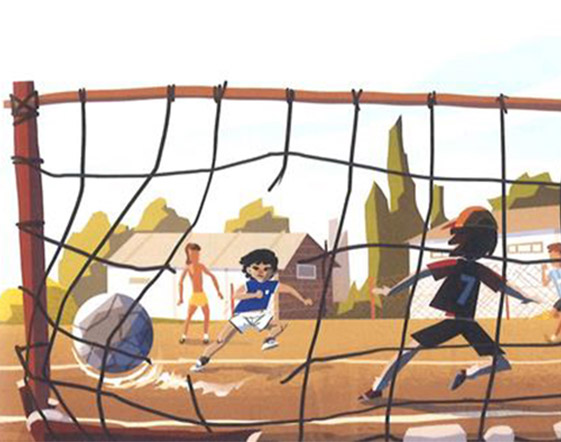 Illustrazione dal libro "Maradona. El pibe de oro", di Igor De Amicis, Paola Luciani, Andrea Castellani, EL 2019