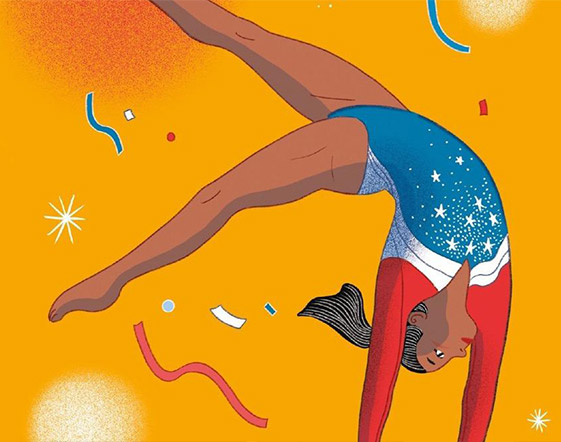 Illustrazione dal libro "La ragazza che imparò a volare. Storia di Simone Biles", di Viviana Mazza, Elisa Macellari, Mondadori 2020