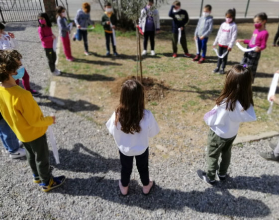 Un anno fa nel giardino della scuola, abbiamo piantato un ulivo, pianta simbolo della pace