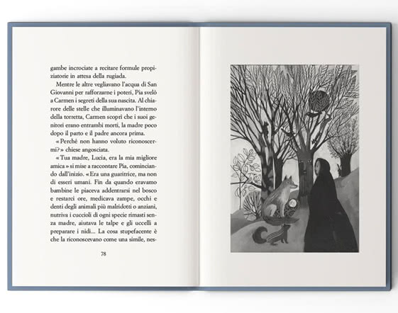 Le illustrazioni di Simona Mulazzani ci proiettano nell’atmosfera cupa che aleggiava cinque secoli fa su quell’angolo del capoluogo isolano, dove le danze di quelle donne facevano sbocciare quegli stessi fiori e quelle stesse erbe aromatiche che avrebbero guarito la piccola Carmen dalla solitudine.