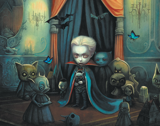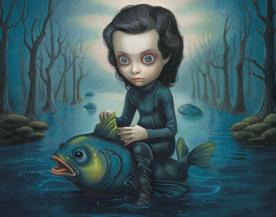 Di pari passo, anche Lacombe abbraccia sapientemente questa dualità e profondità nei suoi ritratti illustrati. Predilige atmosfere dark e surrealiste, ma risulta al tempo stesso delicato, poetico; raffigura i personaggi in tenera età, ma con un portamento da adulti, come quello di chi è dovuto crescere troppo in fretta. Aggiunge, poi, dettagli che fanno parte del suo vocabolario iconografico distintivo, o che rimandano alla tradizione letteraria per come la conosciamo.