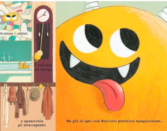 Imperdibile Non aprire questo libro. Leggi qualcos'altro!, primo e famosissimo titolo di una fortunata serie di albi super divertenti che i piccoli conoscono e amano perché il mostro protagonista parla direttamente loro chiedendo, con tono tra il buffo e il minaccioso, di non leggere, non aprire quel libro, né tantomeno sfogliare le pagine! Succede invece che, mentre si legge, cresce sempre di più la voglia di farlo perché il gusto vero del libro è proprio quello di girare una pagina e trovare una nuova sorpresa, a qualunque età! Queste specie di mostri che vivono tra i libri sono però un po’ irrequieti, quindi potrebbe anche capitare di incappare in pagine smangiucchiate da Rosicchio, il quale sostiene che, oltre che utili e divertenti, i libri siano anche buonissimi, tanto di giorno quanto di notte, quando si avventura tra le favole delle buonanotte e tra una pagina rosicchiata e l’altra ci rende partecipi delle sue scoperte, grazie ad alette e intagli interattivi dietro cui curiosare, come in Rosicchio. Favole della buonanotte.