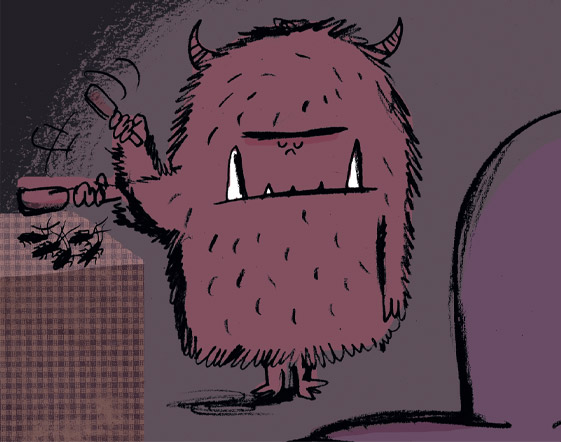 Illustrazione tratta dal libro "Pigiama party con i mostri", di John Dickson, Raúl Guridi Nieto, Feltrinelli 2022