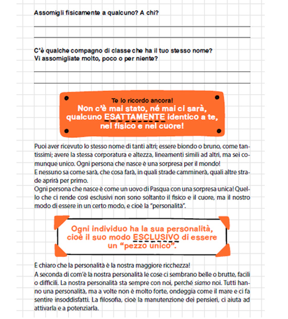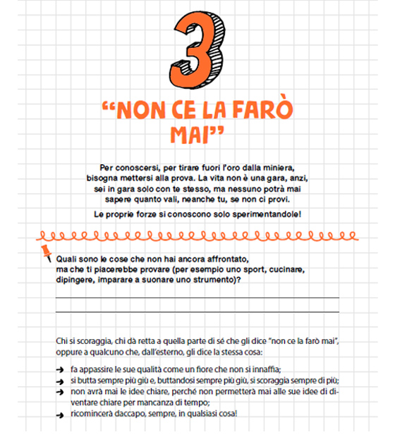 Ecco, quello che questo libro fa è cercare la motivazione, capire, ed è anche una sfida coraggiosa da intraprendere per il ragazzo o la ragazza che, piano piano, risponde a domande, quasi come se compilasse un diario pronto ad accoglierlo senza giudicarlo.