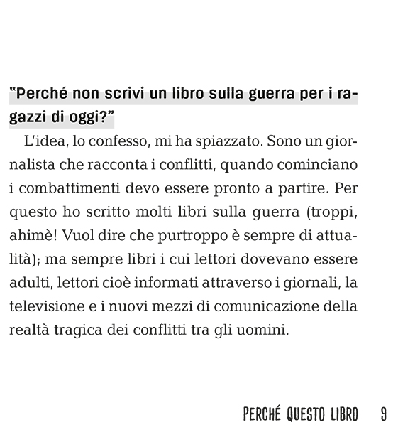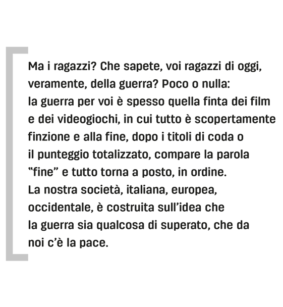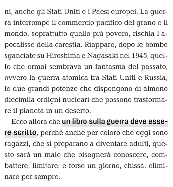 Un libro sulla guerra deve essere scritto, perché anche per coloro che oggi sono ragazzi, che si preparano a diventare adulti, questo sarà un male che bisognerà conoscere, combattere, limitare: e forse un giorno, chissà, eliminare per sempre