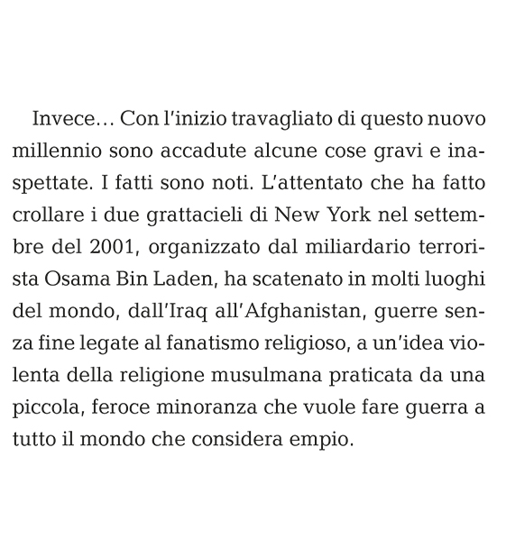 E poi c’è soprattutto la testimonianza di Domenico Quirico all’interno di questo libro. La storia di un uomo che è stato rapito, che ha raccontato le guerre, che è ritornato dopo aver vissuto quanto sia difficile crescere in dei posti in cui combattere è motivo di vita – l’unica scelta. Per questo, senza metterci a giudicare nessuno, senza preconcetti facili, è importante capire sin da piccoli che il mondo che conosciamo non è il solo possibile e che, in posti che poi non sono così distanti da noi, basta un niente per tornare nella bruttura. Basta un niente per dimenticare. Basta un niente per scatenare tutto, ancora. Basta un niente.
