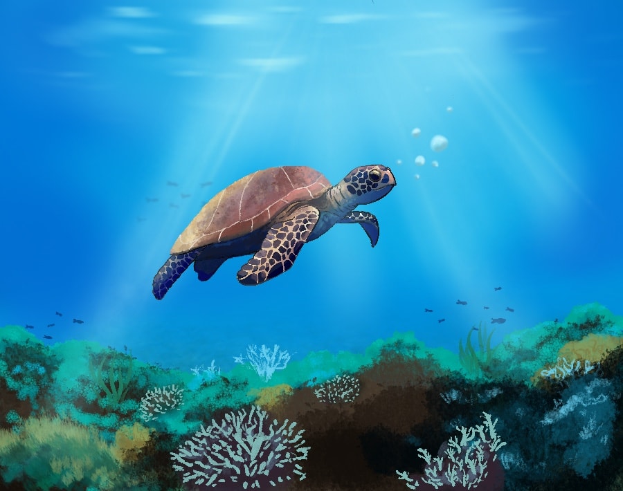 Le tartarughe sono simbolo di lentezza perché le specie che vivono sulla terra ferma hanno un guscio pesante e devono strisciare il piastrone, faticando a muoversi in zone piene di ostacoli. Le tartarughe marine sono invece agilissime: il carapace è un galleggiante dalla perfetta forma idrodinamica e le zampe sono completamente trasformate in pinne, instancabili. Nuotano a oltre trentacinque km/orari, come quando in bicicletta stai pedalando proprio forte. Si immergono fino a cento metri di profondità e amano stare vicino alle coste. Se non capitano incidenti sono animali che vivono settant’anni o più. Adorano godersi le acque calde e limpide della barriera corallina, dove trovano il cibo preferito: spugne, coralli molli, anemoni, crostacei e alghe. Le tartarughe sono animali tendenzialmente solitari e si ritrovano in piccoli gruppi solo durante la stagione dell’accoppiamento. Che avviene ogni due o tre anni. Le femmine depongono le uova sempre nella stessa spiaggia dove sono nate. E in certi casi si fanno anche quattromila chilometri di traversata oceanica! Hanno un fantastico senso dell’orientamento. In parte seguono il magnetismo terrestre e poi, molto probabilmente, riconoscono “a fiuto” proprio la sabbia che le ha cullate.