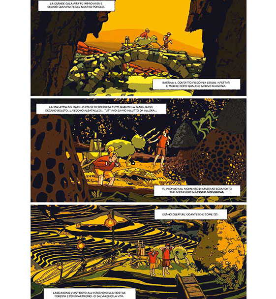 Ecco un altro livello di lettura possibile, per questo fumetto: in Essere montagna c'è una riflessione tutt'altro che banale sulla predisposizione dell'uomo - che sia alto due metri o pochi millimetri non cambia - a delegare la soluzione dei propri problemi a quelli che Giorgio Manganelli chiamava gli dèi ulteriori.