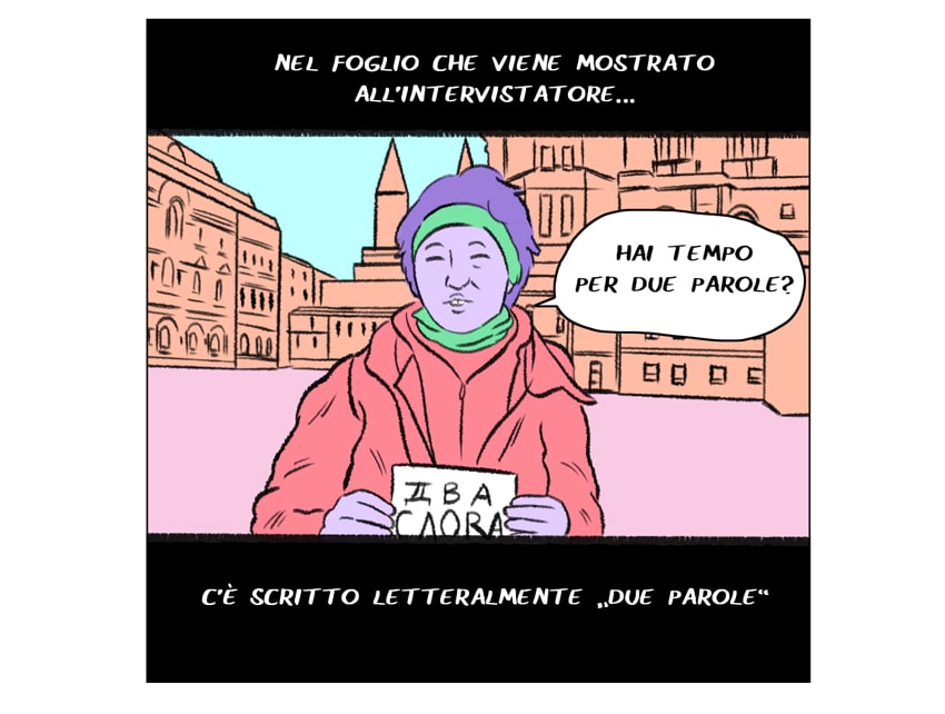 Tra queste, c'è anche una donna con un cartello in mano che recita “Due parole”.