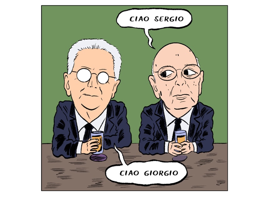 E poi all'improvviso, l'illuminazione: ma certo! Sono Giorgio e Sergio! Due che avrebbero voluto passare un po' di tempo a pesca, o a leggere un buon libro, e invece sono costretti a incontrarsi alla chetichella - un po' come quando Francesco vuole andare a comprarsi un bel disco - lontano da sguardi indiscreti. E allora levi un calice alla loro salute, e brindi al bene comune, e a chi sa farsene carico assumendosi responsabilità scomode e faticosissime.