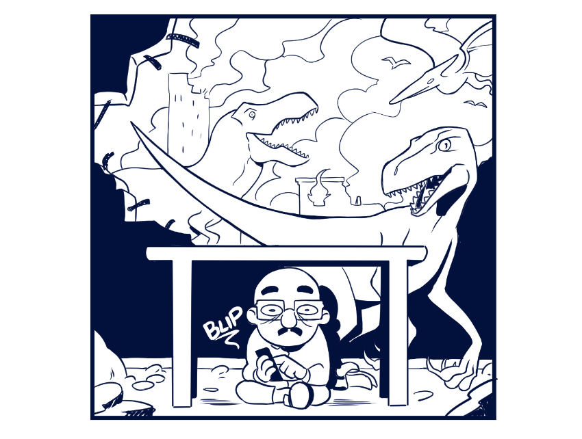 Ma se questa volta la scusa non fosse proprio un pretesto per evitare la cena? Mmm, forse dovremmo chiedere ai dinosauri là fuori... Provateci voi a muovervi con dei t-rex a piede libero!