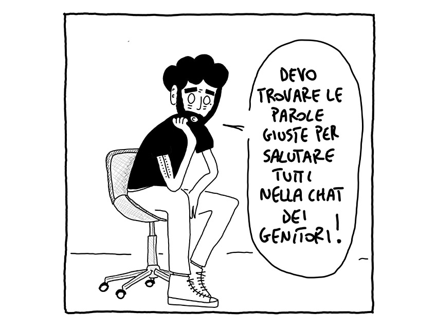La mamma rappresentante di classe che, investita di un potere per lei forse troppo grande, si sente in dovere di scrivere a ogni ora del giorno e della notte, facendo fumare il cellulare nella tasca. Il padre simpaticone che, unico tra le mamme agguerrite, risponde solo tramite battute. Ci sono poi i genitori taciturni, quelli sempre contrari, quelli che non prendono mai posizione e, infine, i volgari.