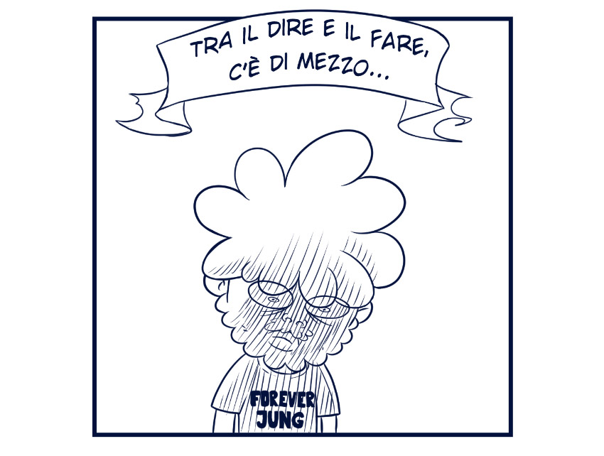Questa volta tocca a Meal. Ehi, un momento! Ma perché il nostro amico è così scuro in volto? Sarà forse per il nuovo proverbio che ci vuole insegnare? D'altronde si sa, tra il dire il fare... ci sono dieci anni di terapia e Meal non li deve aver presi molto bene a quanto pare.