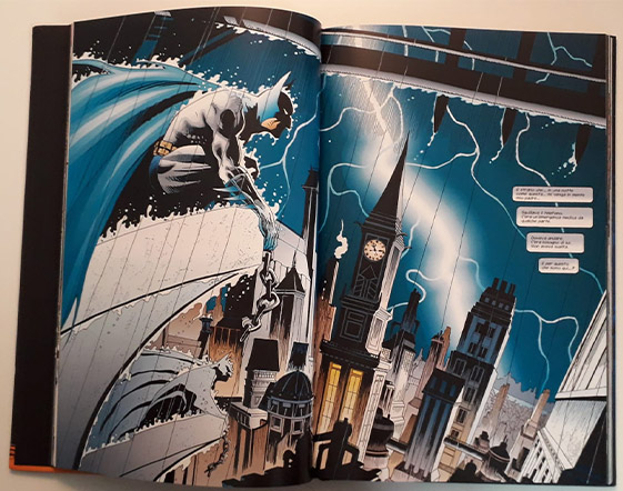 In questa meravigliosa tavola possiamo notare come Loeb e Sale riescano a portare al lettore i dubbi di Bruce, attraverso didascalie brevi ma ficcanti, che aggiungono profondità alle lotte di Batman contro il crimine, senza mai rallentarne il ritmo.