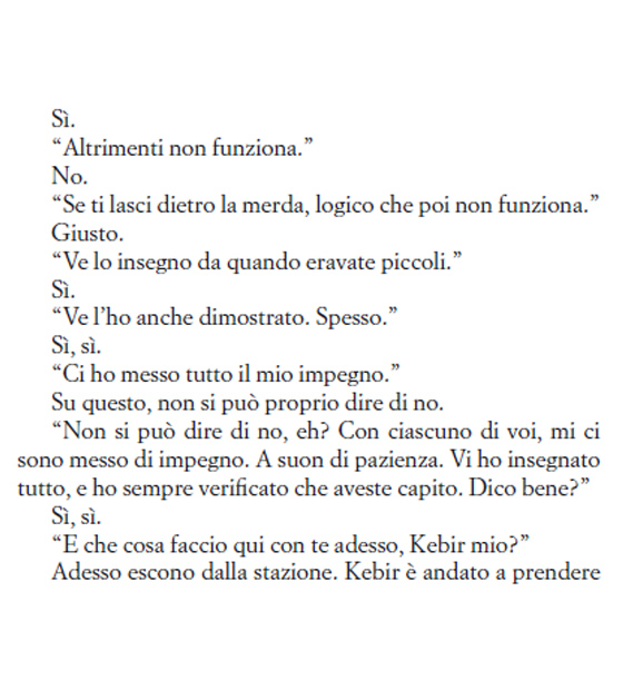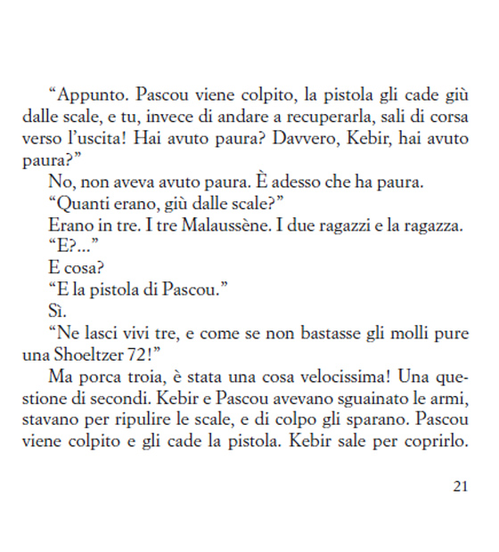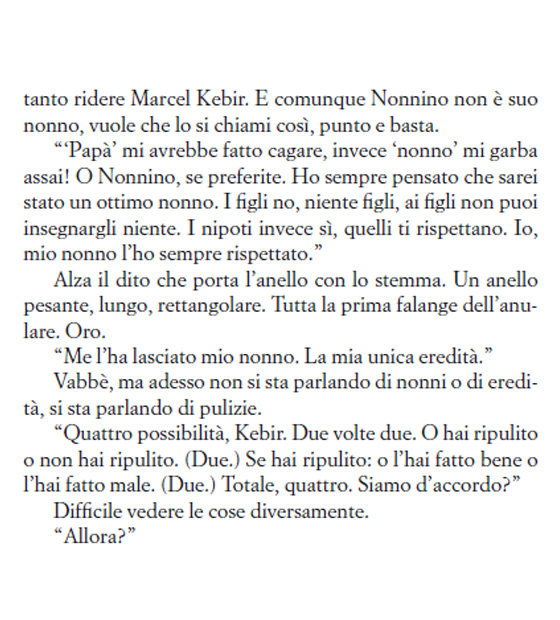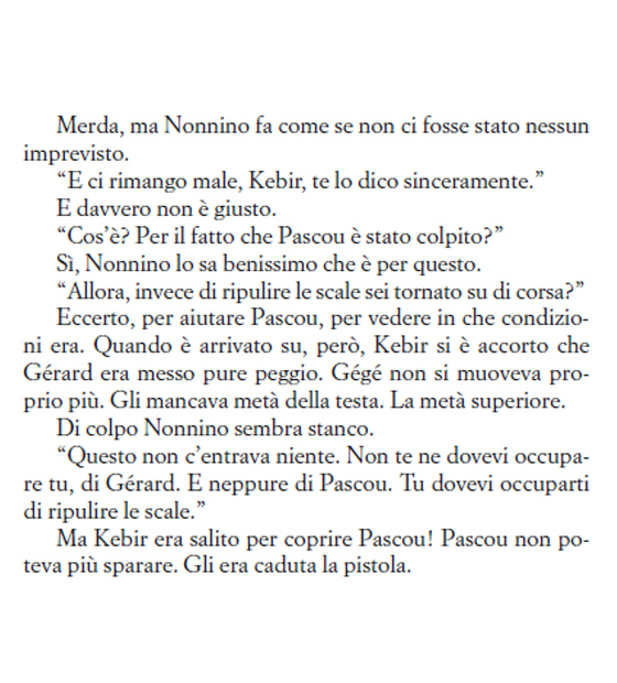 La faccenda riprende proprio dal momento in cui Nonnino – un uomo distinto, gentile, ben educato, che ha formato una generazione di malviventi che stupiscono per un aplomb invidiabile – rimprovera uno dei suoi sgherri, il giovane Marcel Kebir, perché ha lasciato una pistola sul luogo del rapimento (e del delitto in generale). Sin da subito, quindi, ci rendiamo conto della pluralità del romanzo che ci apprestiamo a leggere. Una pluralità che si declina in tanti punti di vista, in tante voci e in tanti registri. Qui, per esempio, sebbene serpeggi sempre l’ironia propria di Pennac, l’autore piega il tono su quello cupo e psicotico dei criminali, di quei gangster potenti e senza scrupoli.