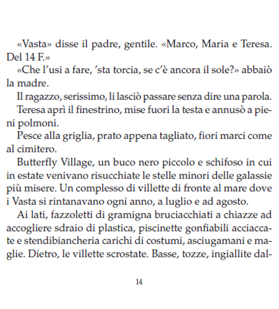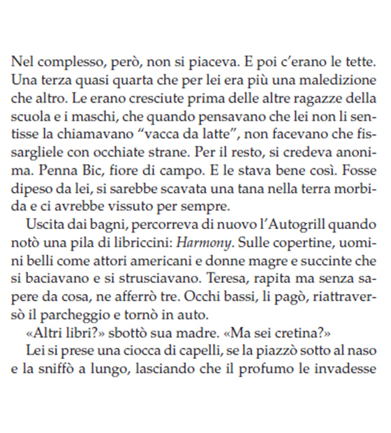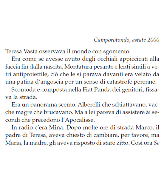Teresa Vasta ha sedici anni, molti problemi col suo corpo, un padre inetto e depresso e una madre bigotta e violenta. La sua famiglia è, di fatto, abusante e questo si riflette sull’autostima della figlia e sulle sue capacità relazionali. Quando Teresa incontra Riccardo vede in lui tutta la bellezza che c’è nel mondo, concentrata lì, in un’unica persona. Tutta la bellezza che non vede in lei. E ne rimane affascinata. Al punto da aver voglia di provare a ribellarsi all’oppressione genitoriale e a immaginare una realtà diversa per sé.