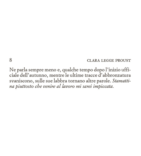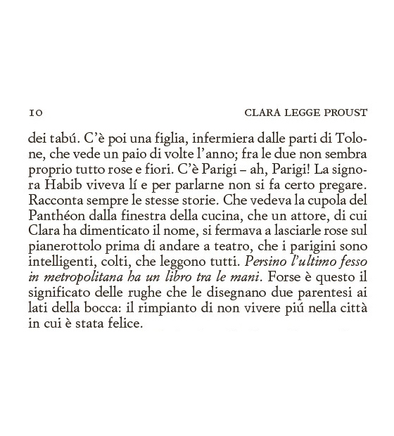 La scoperta di Proust, al pari di un innamoramento, risulta come un segno del Destino, una rivoluzione nelle vita di Clara.