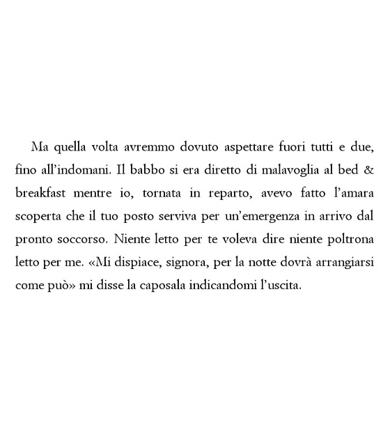 Quando hai un figlio disabile cammini al posto suo, vedi al posto suo, prendi l’ascensore perché lui non può fare le scale, guidi la macchina perché lui non può salire sull’autobus. Diventi le sue mani e i suoi occhi, le sue gambe e la sua bocca. Ti sostituisci al suo cervello. E a poco a poco, per gli altri, finisci con l’essere un po’ disabile pure tu: un disabile per procura.