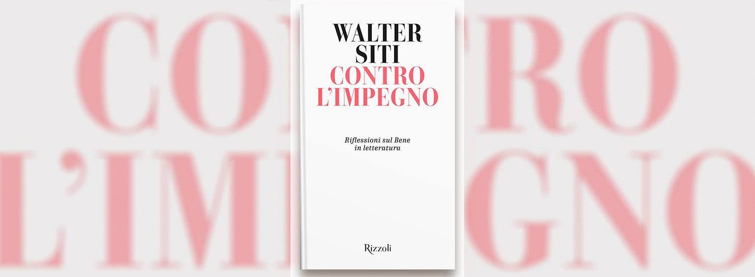 Quello che Walter Siti prova per la letteratura è un amore evidente, profondo e viscerale. Ed è proprio questo amore a spingerlo a ragionare su di essa e sul percorso e le direzioni che questa ha intrapreso nel corso degli anni. Così nasce Contro l’impegno. Riflessioni sul Bene in letteratura, un pamphlet che raccoglie i pensieri dell’autore su questa materia – alcuni già pubblicati su quotidiani e riviste e qui riaggiustati, altri inediti.