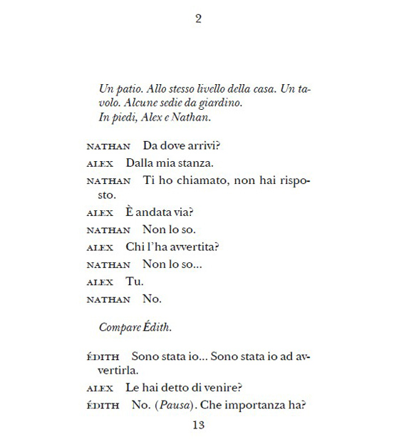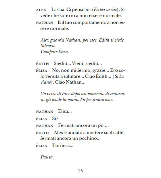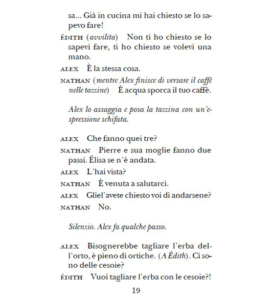 È inevitabile pensare che Reza abbia attinto dal suo maestro per scrivere di Alex e Nathan. I due fratelli si amano ma subiscono la reciproca sensazione d’inferiorità e di superiorità, imposta prima dal padre e poi accentuata dal tempo, fino a scavare una fossa. Un’altra morte. E ovviamente Élisa aggiunge peso a questo conflitto atavico: è dilaniata dal suo amore per Nathan ed è dilaniata dall’essere amata da Alex, vuole andarsene e vuole restare allo stesso tempo. La sua macchina, però, si rompe ogni volta che ci prova, come a indicare l’impossibilità di risolvere questa situazione ambigua.