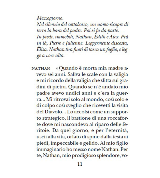 Tre anni fa Élisa mi ha lasciato. All’epoca tutti mi hanno preso per un imbecille. Imbecille e cieco. Lui ha fatto in modo di non rivederla più. Per affetto nei miei confronti, immagino… Si è fatto da parte... così come ha rinunciato alla musica, così come ha rinunciato al suo fulgore, alla vena di follia che aveva, al suo eroismo… Quel che è certo è che io non ho mai amato nessuno più di lui. Se Nathan morisse, non puoi immaginare quanto mi sentirei solo… Forse quanto lui oggi…