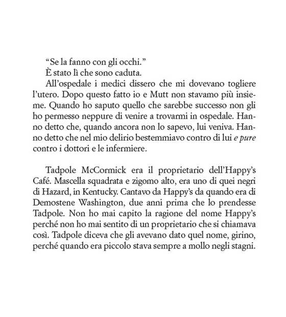 L’importanza della pubblicazione di questo romanzo del 1975 di Gayl Jones (oltre che per la scrittura intensa, ruvida e tagliente, estremamente efficace) penso stia nella vergognosa attualità del problema. Se allarghiamo il punto di vista, oltre la questione afroamericana, certi subdoli meccanismi di assoggettamento femminile continuano a essere considerati “normali”, hanno ancora il potere di porre limiti e restrizioni nella vita delle donne.