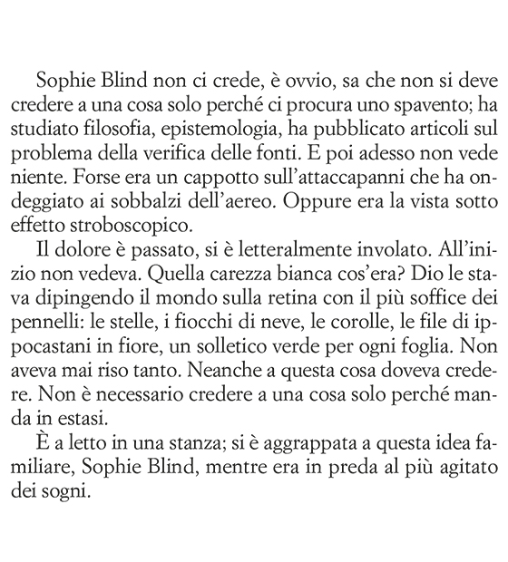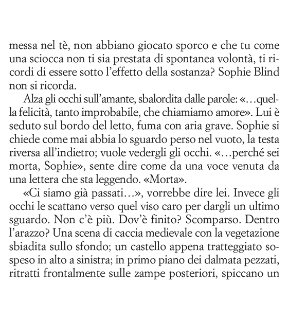 La voce della protagonista Sophie Blind si intreccia in maniera indistricabile a quella della sua autrice Susan Taubes, che l’ha plasmata per affidare a questo personaggio unico la sua storia.