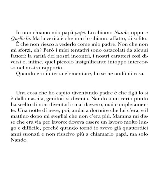 Ma perché così lontano? Perché la sua vita è una storia complicata: è la storia di un figlio abbandonato dal padre quando ancora era un bambino. Pietro non è riuscito a comprenderne fino in fondo il motivo: non sa perché quell’uomo, che ora chiama Nando, fosse uscito dalla sua esistenza, ma è riuscito a superarlo, ad andare avanti. Ce l’ha fatta soprattutto grazie all’aiuto di Paco, un amico della madre che negli anni è diventato un secondo padre per lui.