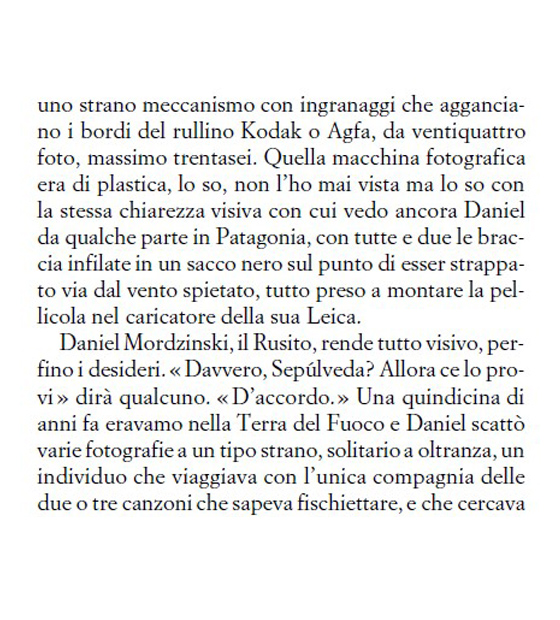 Ciò che si ricava da questo viaggio, da questa esplorazione nei momenti di una vita, è il ritratto polimorfo di una personalità eccezionale, il caleidoscopio con il quale gli occhi di Luis Sepùlveda riuscivano a posarsi sui fatti del mondo, dai più intimi e personali, a quelli che appartengono alla storia, spesso sanguinosa, del Novecento. Una scrittura che si incarna nella vita stessa, ma sempre limpida. Che non regala il semplice fascino della bellezza, ma sempre indirizza al sogno di un mondo migliore, “più giusto, più pulito e generoso”.
