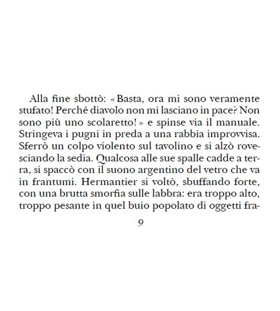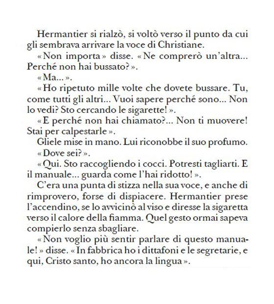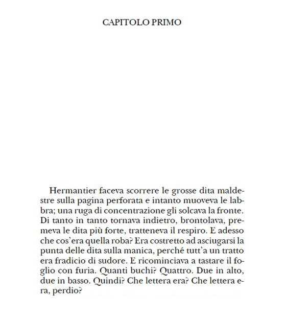 Perde così il controllo sulle cose. Perde la chiarezza, perde i contorni: nulla è mai stato così fuori posto, fuori fuoco. E comincia a innescarsi il sospetto. Un sospetto che coinvolge tutti, da sua moglie al suo più caro amico, dai collaboratori agli oggetti. C’è un passaggio in cui, nel forte bisogno di una rivendicazione di autonomia, Hermantier prova a scrivere una lettera, ma come si fa a scrivere non sapendo se si sta andando fuori dalle righe? Se una parola ha preso il posto di un’altra, se si è sovrascritta? Soprattutto, come può rivedere le sue riflessioni, se non può rileggerle?