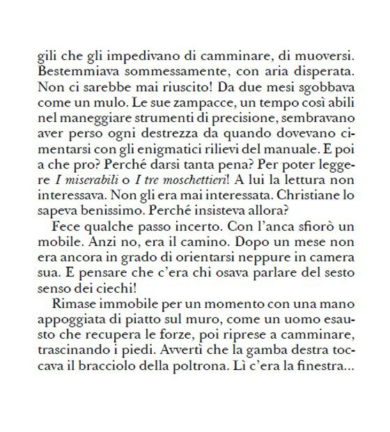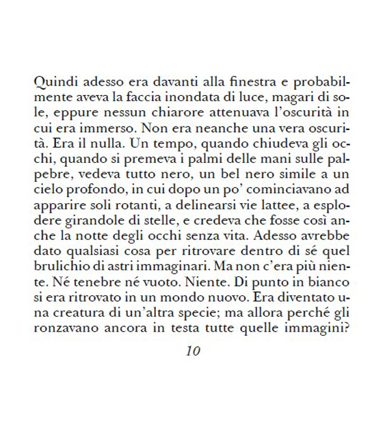 Adesso era davanti alla finestra e probabilmente aveva la faccia inondata di luce, magari di sole, eppure nessun chiarore attenuava l'oscurità in cui era immerso. Non era neanche una vera oscurità. Era il nulla