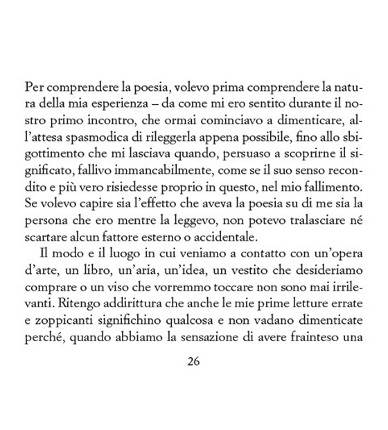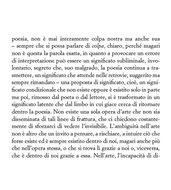 Sì, perché queste pagine – che non si possono descrivere, ma da cui bisogna farsi attraversare – ci presentano un conto molto veritiero e lampante: non viviamo mai il momento. Per quanto ci raccontiamo di essere nell’hic et nunc, in realtà non ci siamo mai. Siamo sempre in un irrealis mood, nella fierezza sconfitta del nostro essere uomini irreali, sempre vibranti in un’essenza che non rispecchia quello che viviamo adesso.