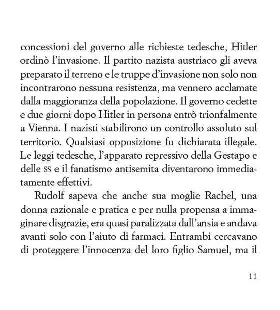 Si comincia da Samuel, scampato alla furia persecutoria che allagò l’Europa durante il secondo conflitto mondiale. La sua mite esistenza di bimbo viennese viene recisa in pochi mesi. Suo padre e sua madre vengono deportati e lui può salvarsi solo grazie alla fuga. Chiamata Kindertransport. Assieme ad altri minori parte per l’Inghilterra dove non sarà facile normalizzarsi.