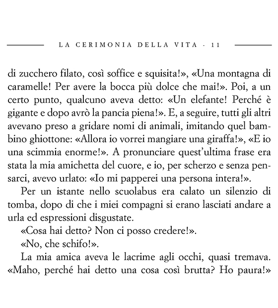 Nulla è stabilito, tutto è soggetto a interpretazione personale (del lettore e dei personaggi). E così il racconto di apertura, La cerimonia della vita, è la celebrazione della morte e del cannibalismo se osservata con occhi viziati dalla consuetudine. Per i protagonisti invece non è solo un comune funerale ma anche un momento per generare vita: