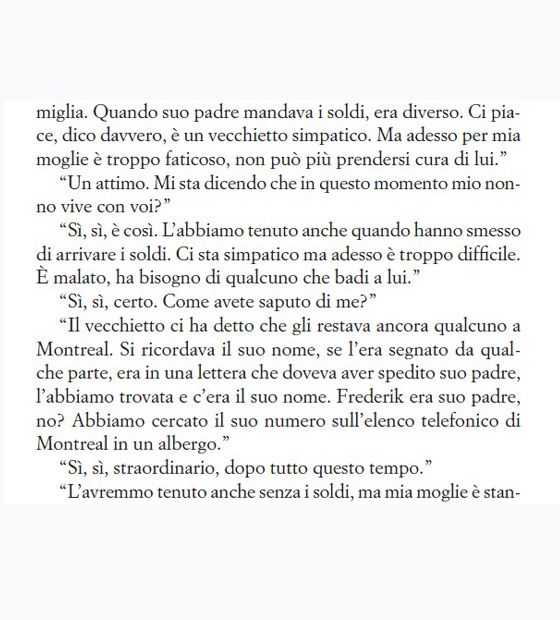 Frase dopo frase, però, ci rendiamo conto che, di tenerezza, non ce n’è neppure l’ombra, in questa storia. Intanto, il nonno non è un simpatico vecchietto, ma un vero e proprio attaccabrighe, che mena fendenti col suo bastone a passanti e poliziotti e scatena, nella mente del protagonista, un desiderio ancestrale di violenza. Sì, perché Cohen fa una rassegna qui della violenza, quella bruta, cieca, senza spiegazione, quella che segue solo la legge del più forte. Per cercare un legame con quel vecchio parente arrivato chissà dove, il protagonista cerca di emularne la violenza fisica e psicologica (il tema del legame con il creatore-genitore tornerà, per esempio, in ne ho avuti di animaletti).