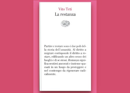 Restanza, la scelta di restare, è per Teti, parola colma di ambivalenze semantiche, portando con sé “malinconia, nostalgia, erranza”, vive di contrasti e di rimandi, ma in un ripensamento del termine, dovuto anche alle nuove modalità di vivere il paese nel periodo di lockdown, sembra perdere quelle connotazioni negative di “immobilismo” e di “rinuncia” per aprirsi a nuovi orizzonti, a “luogo di un possibile futuro”.