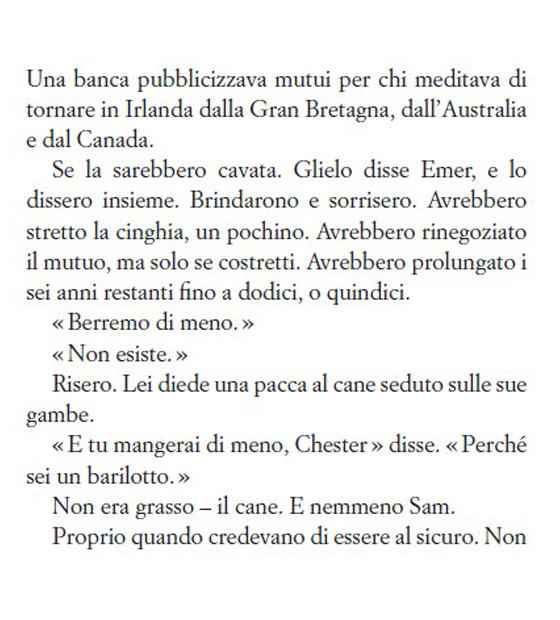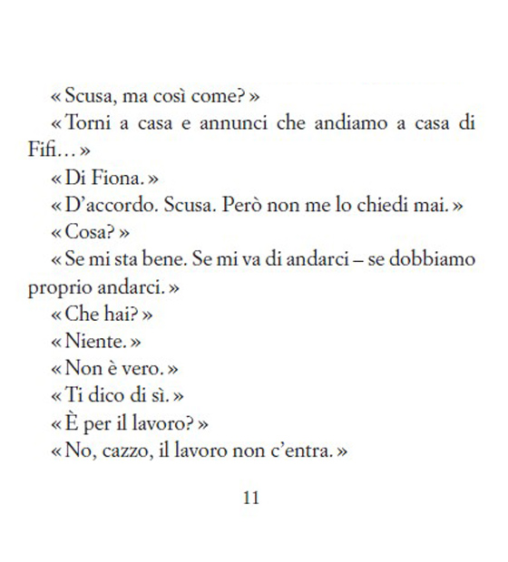 E ora era davvero l’uomo senza figli. In casa non c’erano. In mente, al risveglio, non c’erano. Spesso i loro nomi sullo schermo, quando squillava il telefono, erano uno shock; niente intorno a lui o nel ritmo delle sue giornate glieli ricordava. Se n’erano andati. Non era un padre