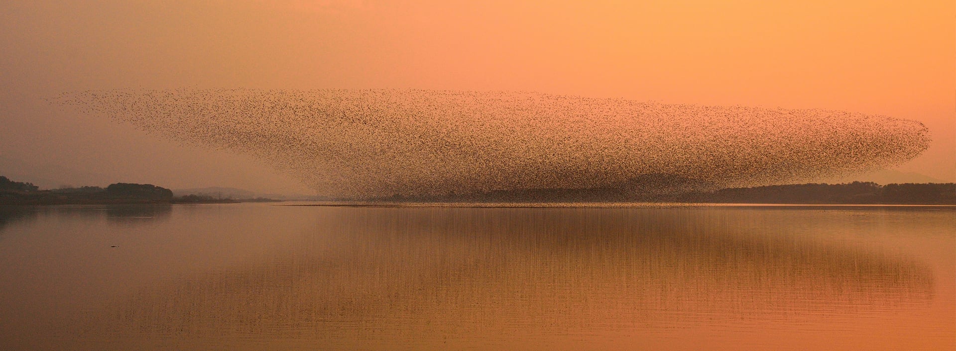Tornando allo studio sul volo degli uccelli: in estrema sintesi, il comportamento dei singoli storni si adatta regolando direzione e velocità a quello degli immediati vicini in risposta anche all’ambiente esterno, in particolare per proteggere tutti dai predatori che sono pronti a puntare gli individui rimasti isolati. Più lo stormo è compatto e più è sicuro, perché i predatori non vogliono rischiare un incidente in volo, in cui avrebbero probabilmente la peggio. Quindi quelli che volano alle estremità dello stormo sono sempre più ravvicinati tra di loro, mentre nelle zone centrali volano più distanziati, e rilassati.