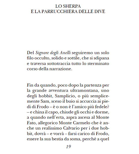 L’autore di Lost in translation legge questo passo con particolare acume, definendo l’esperienza di Sam coincidente a quella del «traduttore come sherpa», come guida che accompagna amorevolmente il proprio protetto e sa quando lasciarlo alla ribalta per segnare la meta, come il poeta che sa quando scomparire per lasciare che la poesia abbia tutto lo spazio che merita. Leggiamo: