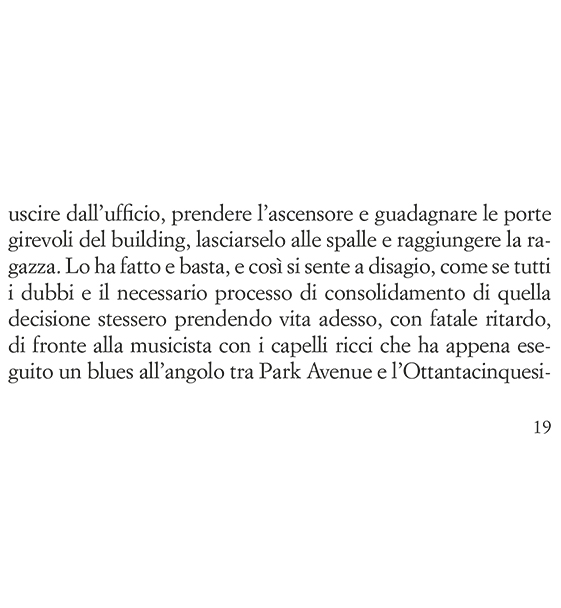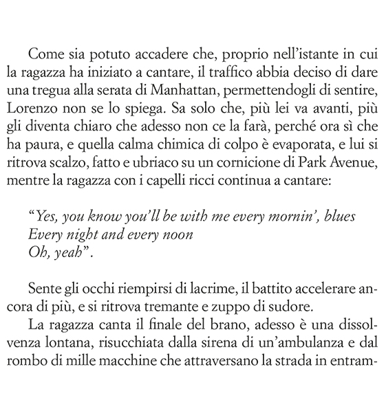 La ragazza con la chitarra, First time I met the blues, il Downtown Blues, il musicista che ha fatto il patto col diavolo. E poi lui sul cornicione, strafatto e ubriaco, i suoi piedi nudi, Park Avenue a doppio senso