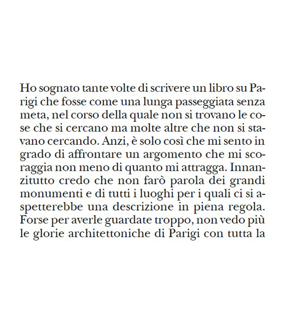 Parigi non è il classico resoconto di chi vede la città per la prima volta, ma è la narrazione affettuosa e incantata di un flâneur che negli anni ha potuto perdersi e vagare senza meta.