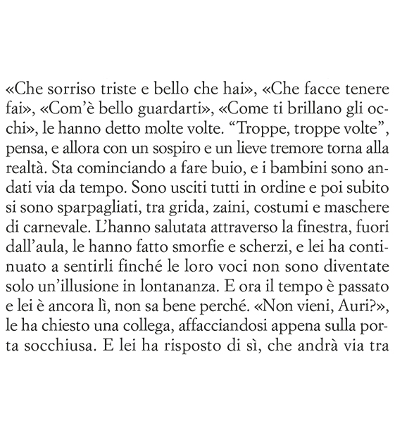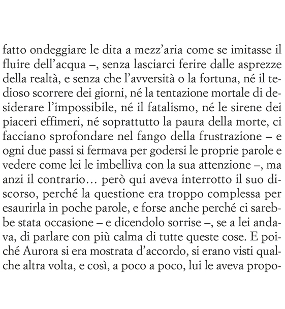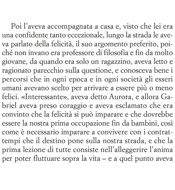 "Ho bisogno di parlarti, ho delle cose bellissime da raccontarti", riesce a dire Gabriel, con tono enfatico nella voce. "Certo, come no" dice Aurora, e si crea un silenzio ormai definitivo, che non esige nemmeno la chiusura di un saluto.