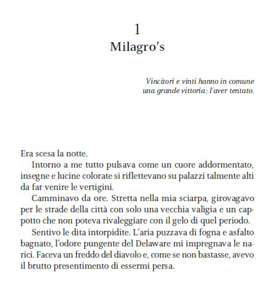 Fuoco e ghiaccio, caldo e freddo, questo romanzo gioca sul contrasto: il gelo della solitudine, di una nuova città nel pieno dell’inverno, degli occhi glaciali di un ragazzo pericoloso si oppongono e si mischiano col caldo del sangue, della passione travolgente, degli sguardi infuocati che Mireya e Andras si scambiano tra il locale Milagro’s di Philadelphia, dove lavorano, e la soglia di casa del palazzo in cui vivono.